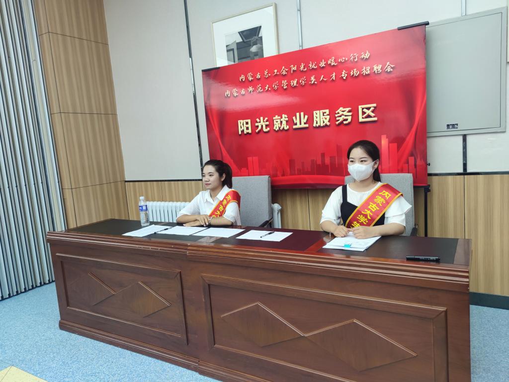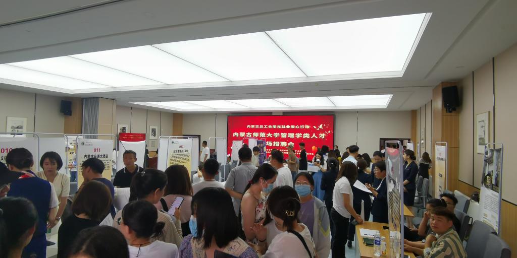 2021年6月15日下午,内蒙古师范大学、内蒙古总工会、赛罕区金桥电子产业园主办,英国365上市官网、经济管理学院、政府管理学院、教育学院、旅游学院承办的“管理学类”内蒙古师范大学2021届毕业生专场招聘会在盛乐校区学生事务中心一楼多功能报告厅举行。英国365上市官网党委书记张升、党委副书记副院长宋磊、团总支书记钱艳艳参加招聘会。