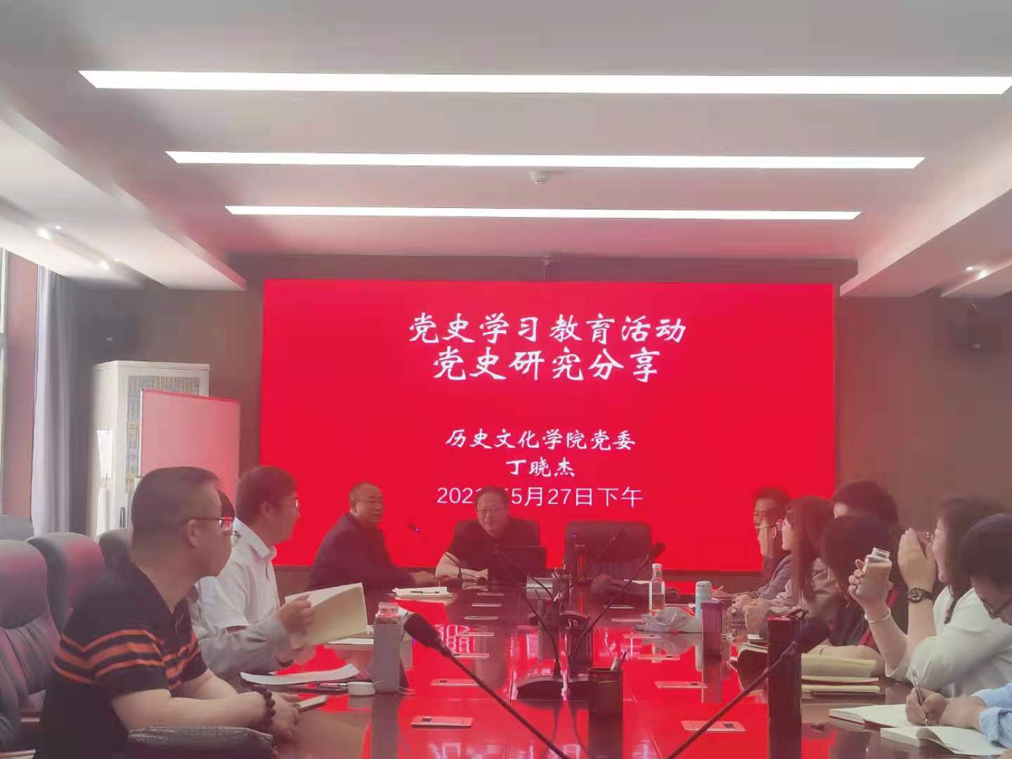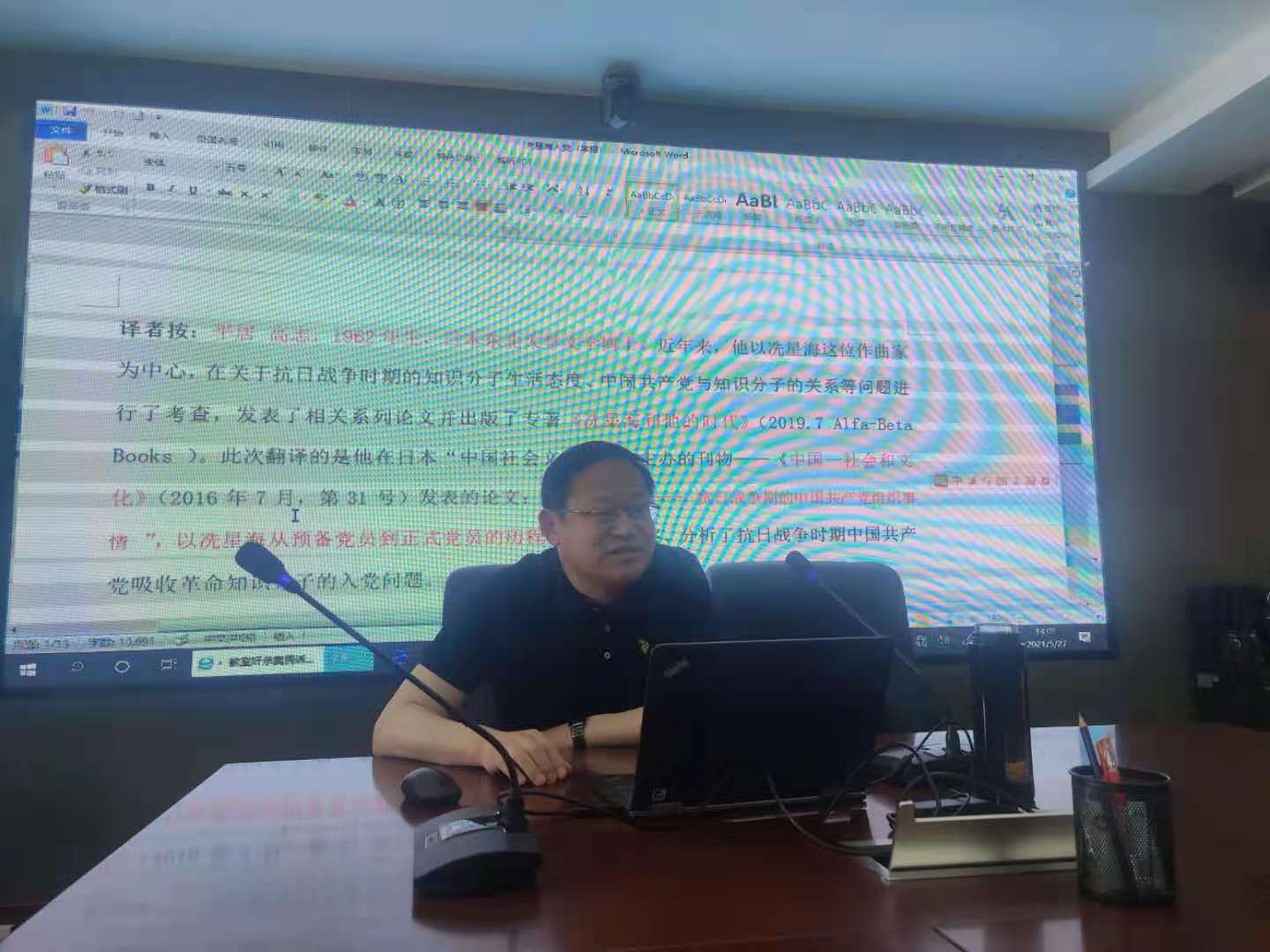 2021年5月27日,英国365上市官网党委开展党史学习教育之党史研究分享,邀请学院丁晓杰教授为大家做《冼星海入党——抗日战争时期中国共产党组织事情》的报告,与大家分享了学术界对中共六大后我党的统一战线工作和吸收知识分子入党相关问题的研究。