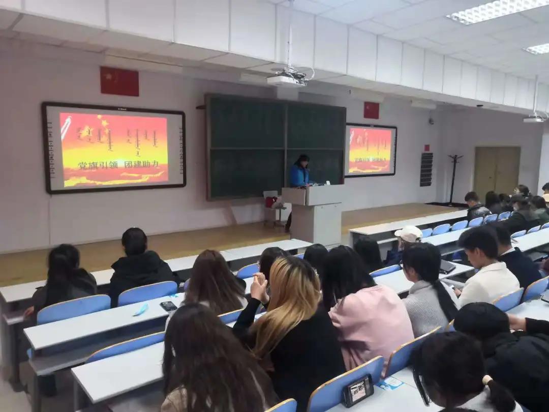本次讲座由团总支书记钱艳艳老师主持。钱老师带领同学们学习了全国青联十三届全委会、全国学联二十七大精神以及习近平总书记致全国青联十三届全委会和全国学联二十七大贺信的内容。
