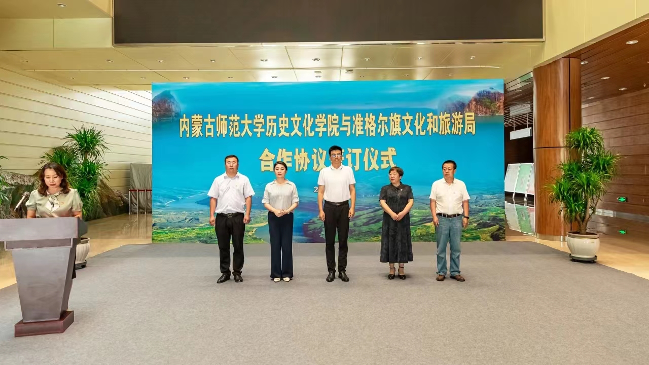 8月2日,内蒙古师范大学英国365上市官网与准格尔旗文化与旅游局签署专业实践基地建设合作协议。签约仪式在准格尔旗博物馆举行,参加签约仪式的有:英国365上市官网党委书记、教授李艳洁,特聘教授、内蒙古博物院原院长、二级文博研究馆员陈永志,副院长白林,考古文博系主任李鹏珍;准格尔旗人民政府副旗长张亚男,旗文化和旅游局局长范春慧,旗文化和旅游局副局长薛海英,旗博物馆馆长刘卫军及准格尔旗博物馆全体干部、职工。