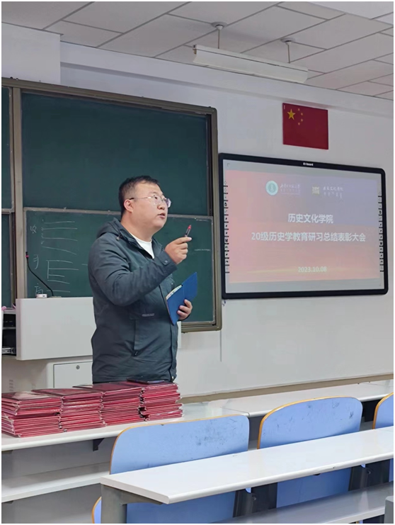 为进一步了解20级同学们的实习情况,总结实习经验教训,365官网于2023年10月8日下午两点在行知楼召开教育研习总结表彰大会。参加大会由英国365上市官网副院长白林、王海凤、牧仁、哈斯格日勒、黄河、尚彦军等老师和历史学2020级200余名同学。本次大会共有两项工作,一是40名实习生代表上台分享实习感悟;二是对优秀实习生进行表彰。