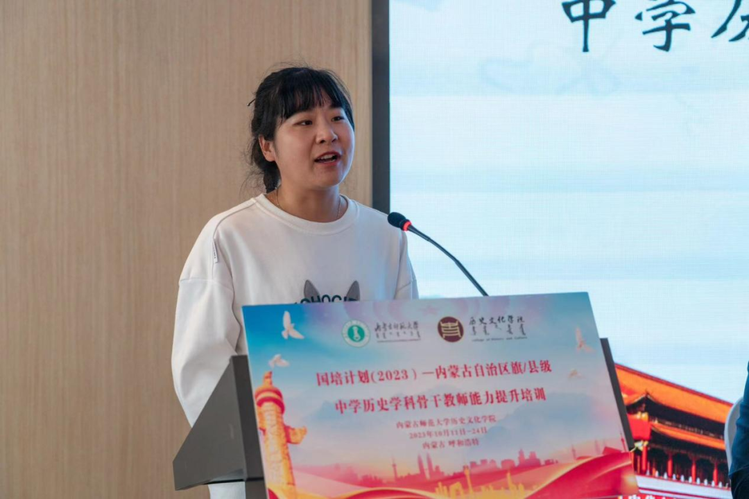 来自包头市第四十九中学的张晓燕老师作为学生代表做了表态发言。她表示大家一定珍惜此次学习机会,认真学习思想知识,落实于实地跟岗,实现理论与实践同进步,积极将培训成果与自身实际相结合,相信每一位学员在本次培训都会收获良多。