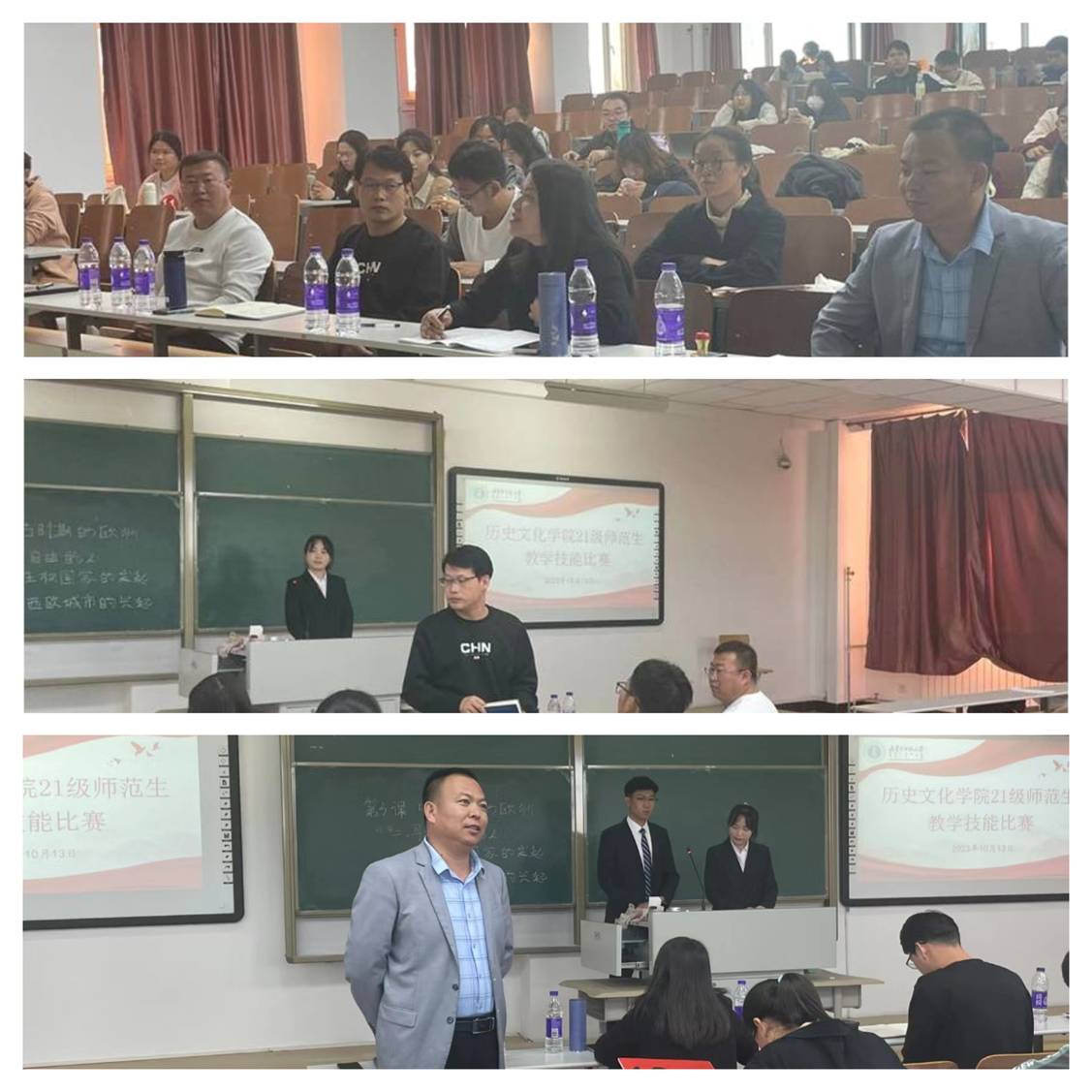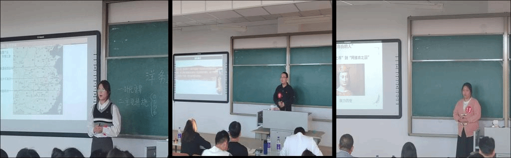 本次比赛甲组有十一位同学参加,乙组有九名同学参加比赛。比赛过程中二十名风华正茂的青年站在三尺讲台上,或循循善诱,或传道受业,都以教师风采述之历史史实,引人向上向前。春华秋实,桃李芬芳。弦歌不辍,芳华待灼。选手在讲课内容上贯以中西对比,加之图文讲解,史料丰富,清晰讲述相关历史,展现英国365上市官网学子学科素养。在讲课过程中选手利用小组讨论环节进行师生互动,采取问答方式调动学生兴趣,活跃课堂气氛,引导学生进行深入学习,体现师范学生扎实教学功底。
