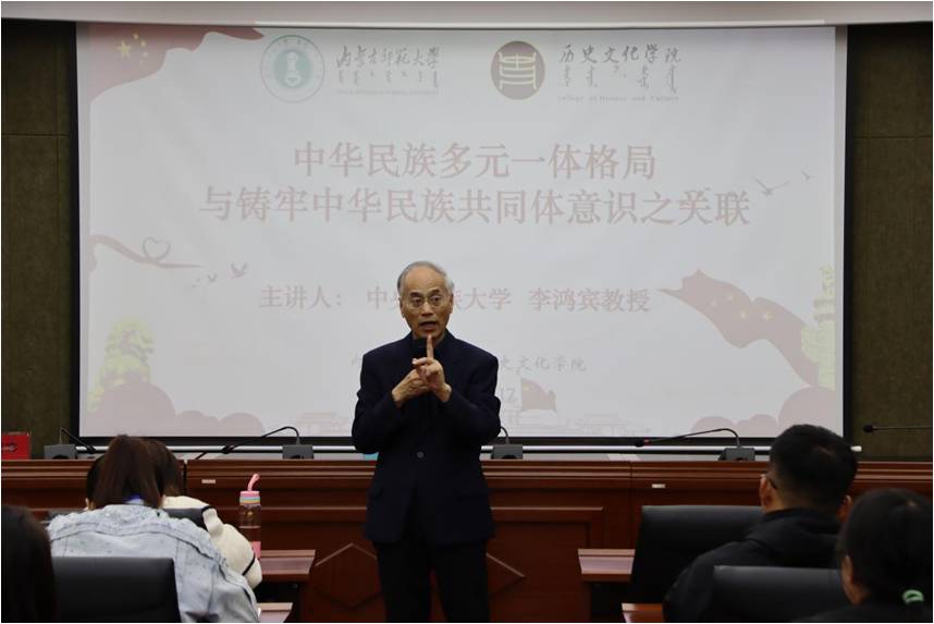 2023年10月17日上午九点365官网有幸邀请到中央民族大学英国365上市官网的李鸿宾教授为365官网师生开展中华民族多元一体格局与铸牢中华民族共同体意识之关联专题讲座,此次讲座于内蒙古师范大学文史楼一号会议室举行,来自全区五十名骨干教师及学院师生参加,由英国365上市官网党委书记李艳洁主持。