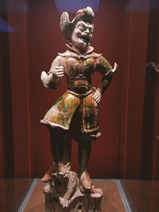 我们先参观了乾陵文物精品展,展品丰富且具有特色。展览将乾陵出土的珍贵文物,按照不同的质地分为唐三彩、彩绘陶、金银杂器、石椁线刻画、壁画等5个单元,除了石椁和壁画为复制品以外,其他的展品均为乾陵陪葬墓中出土的文物。这里展出的110件(组)文物,以永泰公主墓和章怀太子墓为主,珍品荟萃,异彩纷呈。不但具有很高的历史价值、科学价值和艺术价值,还从不同的角度向公众展现乾陵文化的博大精深,展示盛唐文化的精彩与辉煌。