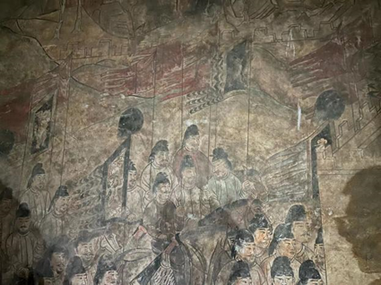 由于乾陵尚未打开,无法窥见其中原貌,史学家便根据一些文物史料,推测并想象了乾陵里的景象,并构造出了一个场馆供人们参观,我们也简要参观了这个展厅。