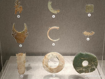 在玉器的制作方面,我惊异于古人在生产力尚不发达的年代能够雕琢出极为精美的玉器。图1是1990年三门峡市虢国墓地M2001出土的西周时期的一组玉器。在这组玉器中,有惟妙惟肖的玉鹿,有纹饰多样的玉璞,还有各种动物形状的玉件以及两件保存完好的玉环玉璧。透过这些文物,我们可以得出一些浅显的结论:从玉件的色泽、大小、精密程度和纹饰纹路来看,西周时期的开玉、制玉技术达到一定的水准,美学、数学意识(圆形玉璧)的生发,对自然的思考,对农业的重视(牛形玉件)以及对权力的认知等。