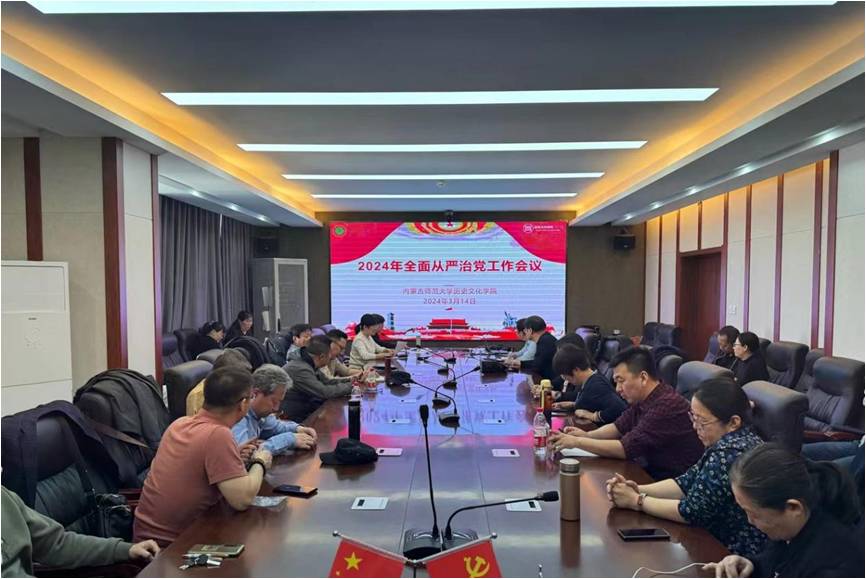 会议在嘹亮的国歌声中开始。李艳洁书记传达学习了学校党委书记李树林在2024学校党的建设暨全面从严治党工作会议的重要讲话精神。强调做好学院2024年全面从严治党工作,要坚持以习近平新时代中国特色社会主义思想为指导,深入学习贯彻习近平总书记关于党的自我革命的重要思想,坚决贯彻全面从严治党战略方针,全面落实二十届中央纪委三次全会、自治区纪委十一届四次全会、教育部2024年教育系统全面从严治党工作会议、教育厅2024年教育系统全面从严治党工作会议、内蒙古师范大学2024年党的建设暨全面从严治党工作会议部署要求,要抓好全面从严治党责任落实,以新的精神面貌投入到审核评估、考古重点实验室建设等工作中,努力开创学院高质量发展新局面,以优异成绩庆祝中华人民共和国成立75周年。