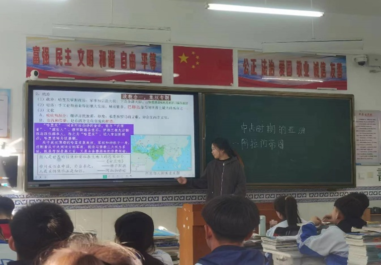 在音德尔第三中学实习的同学们教学工作方面主要承担初一年级与初二年级的历史教学。在课堂上,实习生们选择给予学生更多的机会发言和表达自己的观点,并通过小组讨论、学生演讲等形式来鼓励他们参与学习,不断调整精进自己的教学方式。但实习生们不变的是教学的赤诚之心,在这样的坚持下,实习生们的教学任务也完成的更加卓有成效,备课与授课更加得心应手。在此过程中,实习生们在收获了许多宝贵的经验和知识的同时,也看到了自己的成长和进步。在未来的工作中,实习生们也立志要继续努力,不断提高自己的教学水平,并帮助更多的学生理解和热爱历史。在班级管理方面,他们做到了亲历亲为,认真对待每一位学生、每一件小事,与学生们相处十分融洽。