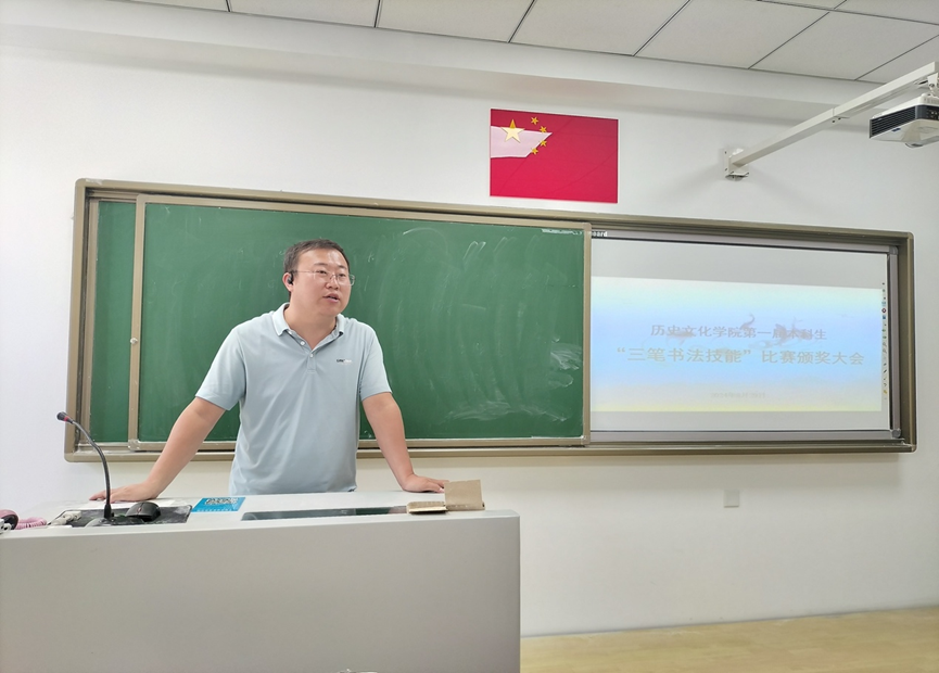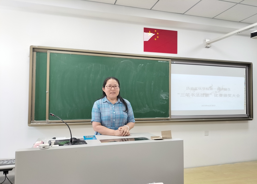 颁奖仪式上,学院副院长白林老师发表了热情洋溢的讲话。他强调,书写技能是师范生未来走上讲台的重要工具,“三笔”技能更是每一位师范生必须掌握的基本功。他指出,学院组织这次比赛的初衷不仅是为了提升学生的书写水平,更是为了培养他们的文化自信和职业素养。白林老师对获奖同学表示热烈祝贺,同时勉励全体同学在书写技能上不断精进,迎接未来的教学挑战。