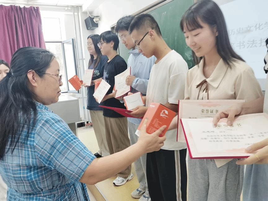 随后,白林副院长与王海凤老师共同为获奖学生颁发了荣誉证书和奖品。仪式在热烈的掌声中圆满结束。王海凤老师在总结发言中表示,本次比赛不仅展现了同学们的书写风采,更激发了大家对书法和速写的浓厚兴趣。她鼓励同学们再接再厉,继续提高书写技能,将其融入到未来的教学实践中去。