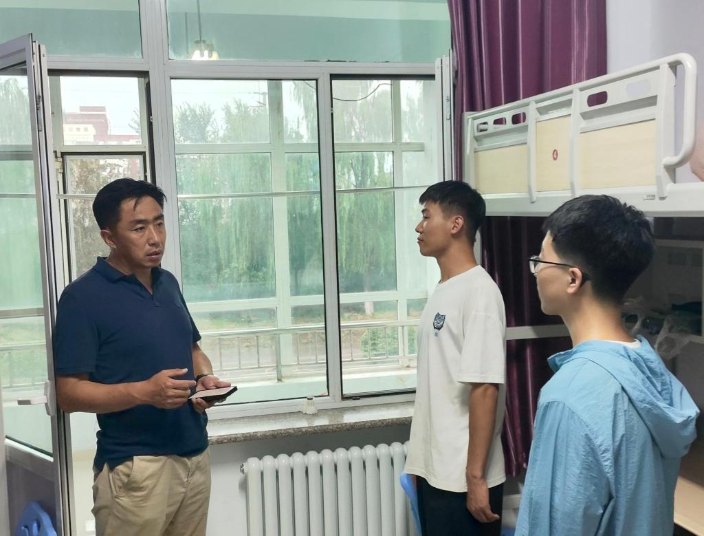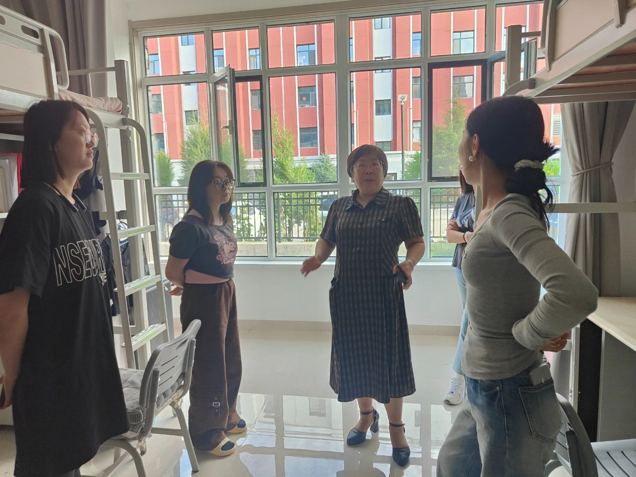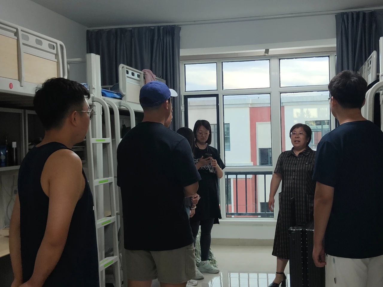 8月31日-9月1日,365官网党委书记李艳洁、党委副书记副院长檀晶、副院长白林、团总支书记钱艳艳、学就办副主任王建国以及2024级新生班主任张旭、永平、何伟凤、萨仁毕力格、王维琪共同走访了365官网2024级本科生、研究生宿舍。