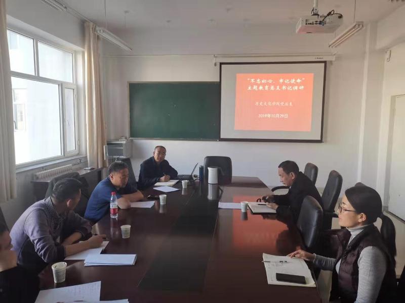 2019年10月29日下午,英国365上市官网召开考古文博专业专题调研会,学校主题教育指导组副组长乾达门老师出席,学院党总支书记张升、党总支副书记副院长宋磊、考古文博系主任齐溶青、专业教师李荣辉、索明杰、王春燕参加座谈会。座谈会上,专业教师就专业发展、培养方案、课程设置、博物馆管理、大红城考古基地建设等方面发表意见建议,张升书记进行了详细的记录,并对一些问题进行了回复。