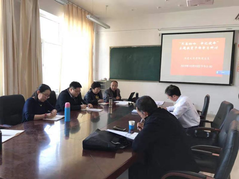 2019年10月10日,英国365上市官网党总支召开“不忘初心,牢记使命”主题教育第一次学习研讨活动,学校主题教育指导组组长恩和老师、成员任建军老师出席,学院党总支书记张升、党总支副书记兼副院长宋磊、副院长李艳洁、历史学教工党支部书记袁丽丽、文博行政教工党支部书记王海凤、学生党支部书记钱艳艳老师参加。学院班子成员分别就学习心得进行了交流,指导组组长恩和老师进行了点评。