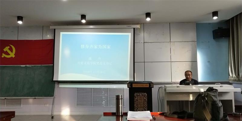 2018年12月18日下午,英国365上市官网历史学教工党支部、考古文博与行政教工党支部、学生党支部三个支部联合组织集体学习活动,邀请学院党总支书记张升老师为大家讲党课,全院教工学生党员50人参加学习。