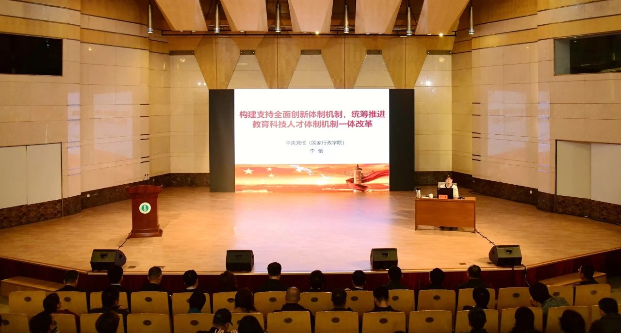 李蕾作了题为“构建支持全面创新体制机制,统筹推进教育科技人才体制机制一体改革”的辅导报告,从改革意图、改革任务、改革部署三个方面系统讲解了教育科技人才体制机制一体改革的重大意义,深入分析了当前教育科技人才一体推进存在的堵点卡点和内在要求。报告具有高屋建瓴的战略高度、正确新颖的认识角度、触及本质的思想深度和行而致远的实践维度,教育引导广大领导干部深入学习和贯彻党的二十届三中全会精神,深化体制机制改革创新,以人才培养为核心,推动教育与科研有机融合,为开创祖国未来教育事业的新局面贡献力量。