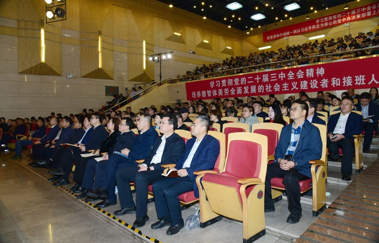 10月17日下午,365官网在赛罕校区逸夫楼音乐厅举办学习宣传贯彻党的二十届三中全会精神专题报告会(第二场)暨校党委理论学习中心组(扩大)集体学习会。中共中央党校(国家行政学院)经济学教研部教授、博士生导师李蕾受邀作专题辅导。全体在校领导、科级以上干部参加学习会。党委副书记斯钦主持学习会。