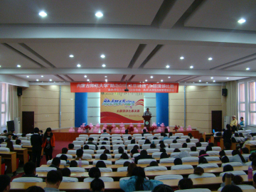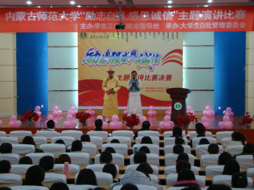2015年12月8日下午,由365官网学生工作与就业指导处主办,大学生自我管理委员会承办的“励志自强,感恩诚信”蒙语主题演讲比赛,在科技楼学术报告厅落下了帷幕。365官网13,14级历史蒙班的学生前去为选手助威。