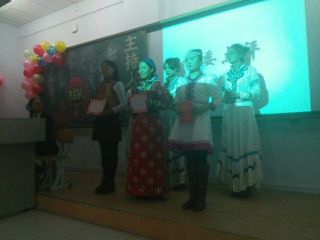 在蒙语组中,来自文化产业管理的娜木雅同学,以其落落大方的动作,感情饱满的语气和精彩的配乐朗诵,赢得了评委及现场观众的一致好评,成为蒙语组冠军。而来自历史蒙班的扎松宝力尔和查苏娜两位选手,也凭其出色的表现分别获得亚军季军。