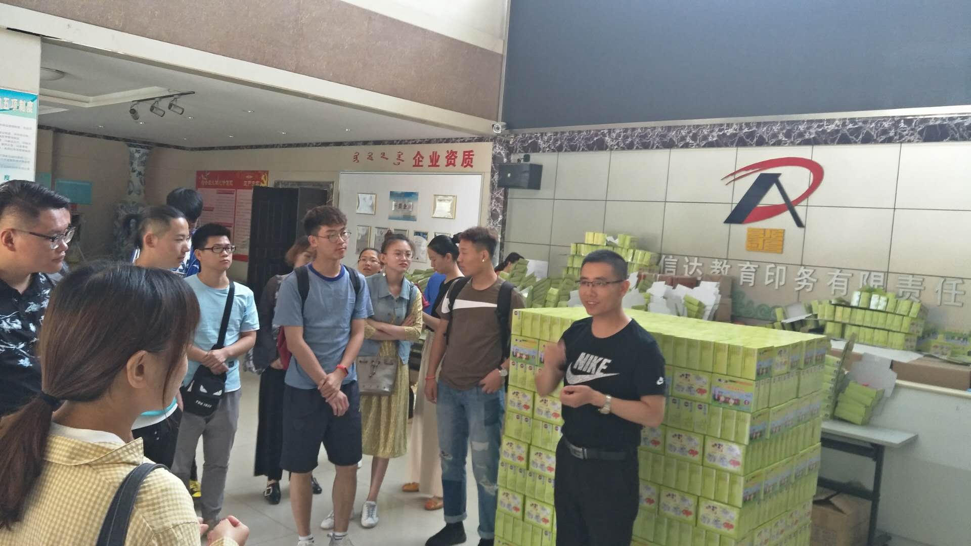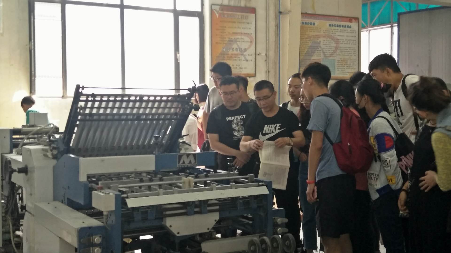 为强化对编辑出版学的认识,加强同学们对现代印刷技术及现代出版行业的了解,2018年5月25日上午九时许,在唐彩霞老师和哈斯格日勒老师的带领下,365官网2016级文化产业管理班的同学们来到了内蒙古爱信达教育印务有限责任公司进行了参观学习。
