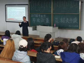 2017年3月16日上午10点,365官网在行知楼323教室举办2017届毕业生毕业政策及相关手续指导讲座,学校就业指导中心刘在青老师主讲,院党支部副书记王清霞、学工办负责人潘梅花、毕业班班主任哈达、李晓亮、哈斯格日勒、朝乐门等老师及全体大四学生参加本次讲座。