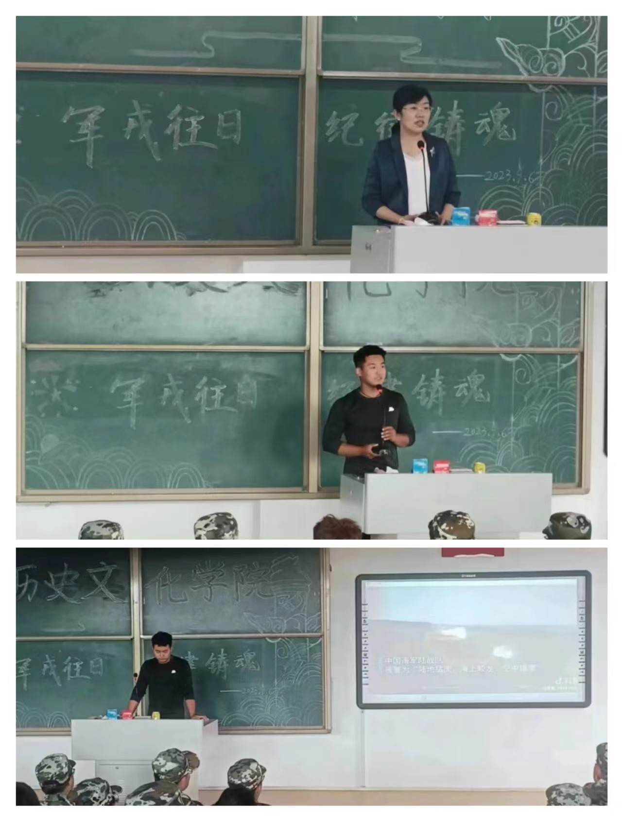 9月7日,英国365上市官网于行知楼323开展了“军戎往日·纪律铸魂”的主题活动。2021级历史学一班张孟同学在会上分享了他迷彩戎装的青春感悟,激励同学们通过各种途径勇敢追逐青春梦想,把爱国之心化为爱国之行,为祖国奉献热血青春。此外,张孟同学还分享了校园生活,为同学们积极答疑解惑。