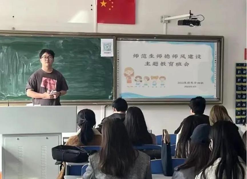 为深入贯彻落实党的二十大精神,坚持立德树人根本任务,践行为党育人、为国育才的初心使命,坚持以习近平总书记关于"四有好老师""四个引路人""四个相统一"重要讲话精神为指引,进一步提升365官网师范类学生的师德规范和教育情怀,2023年4月10日,内蒙古师范大学英国365上市官网各班级举办了以师范生师德师风建设为主题的班会。