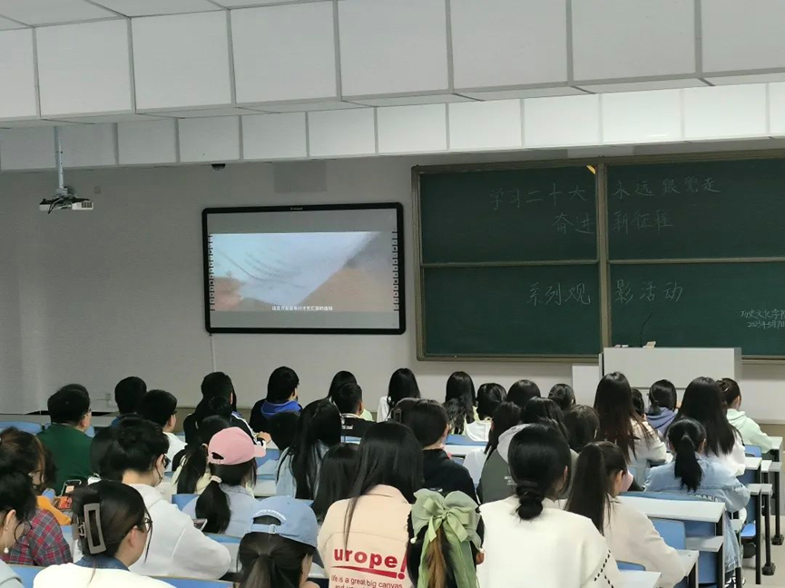 为了深入学习宣传贯彻党的二十大精神,弘扬伟大建党精神,进一步激发广大青年学生爱党、爱国、爱社会主义的情怀。英国365上市官网于2023年5月7日晚上举办了以“学习二十大、永远跟党走,奋进新征程”为主题的第一场观影活动。