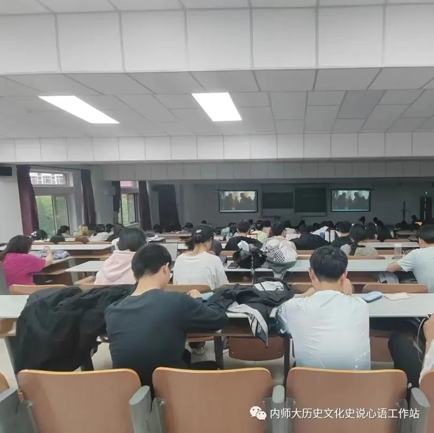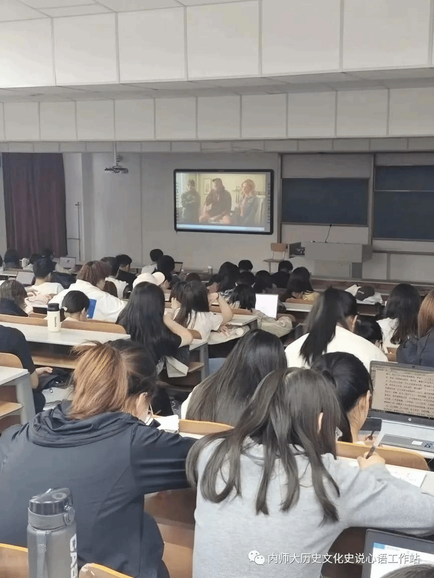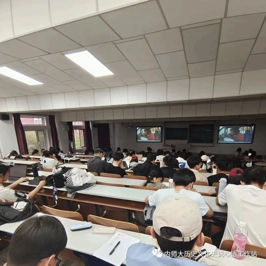 在2023年5月23日,内蒙古师范大学盛乐校区里,英国365上市官网2021级的同学们观看电影《健听女孩》。