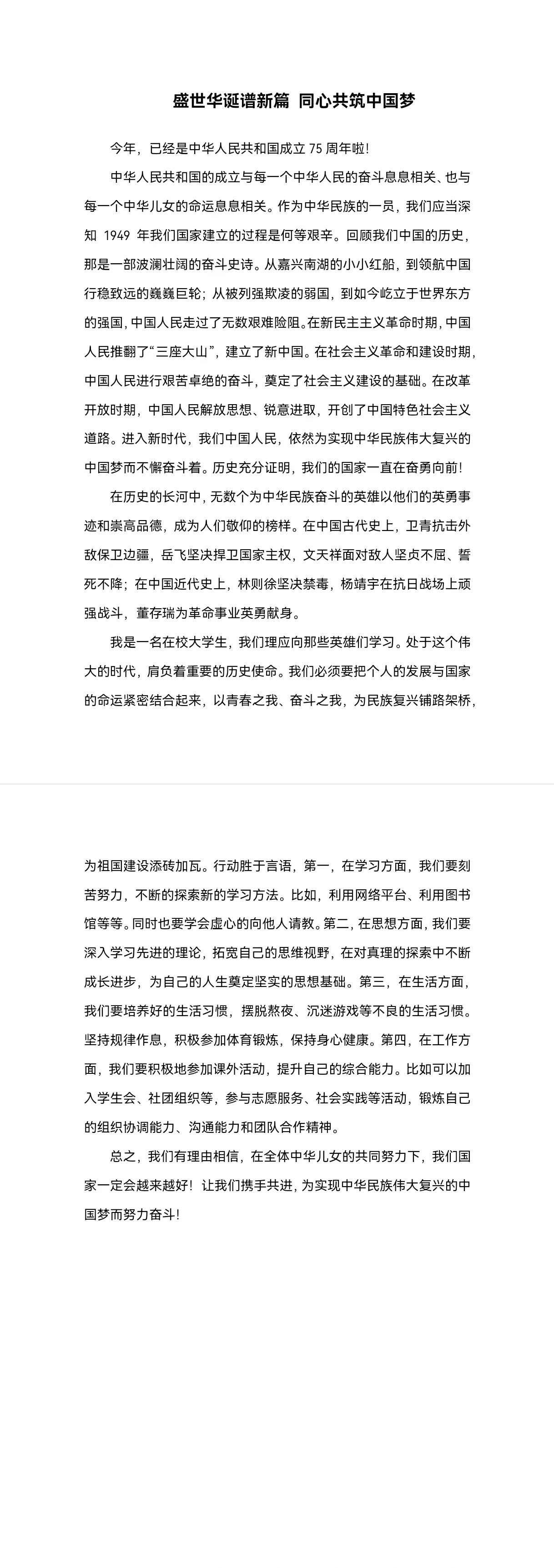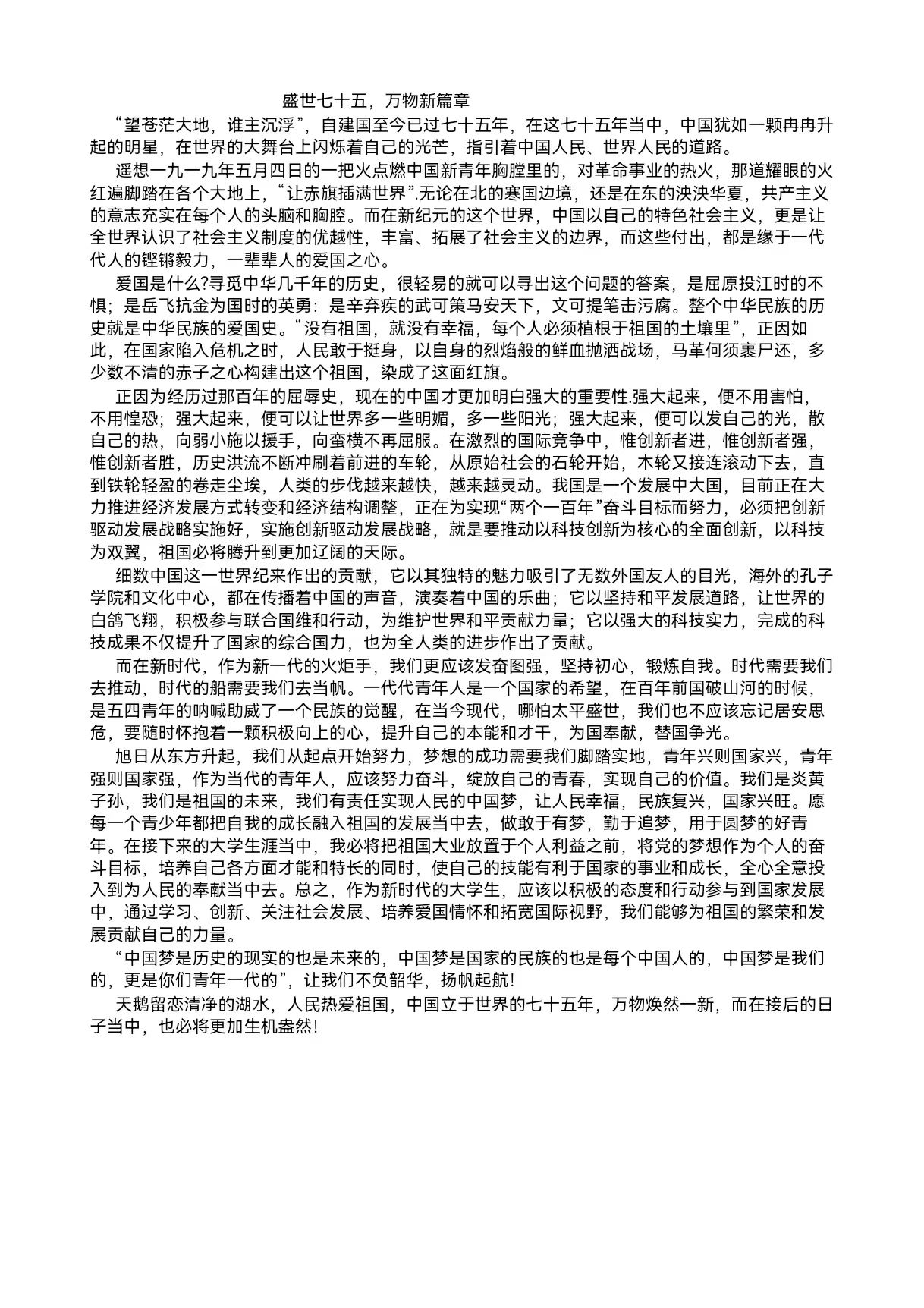 为热烈庆祝中华人民共和国成立75周年,营造浓厚的节日氛围,激发365官网学子的爱国情感,弘扬爱国主义精神,全面落实立德树人根本任务。近日,365官网组织开展“盛世华诞谱新篇,同心共筑中国梦”线上主题征文比赛。
