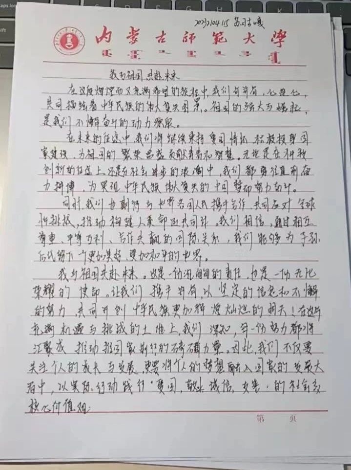 这场文字的盛宴不仅是对爱国情怀的深情表达,更是青年学子心中炽热信念的无声共鸣。同学们不仅正确认识到新中国成立以来取得的伟大历史成就,深刻领悟作为新时代青年肩负的历史重任,更将自己的理想同祖国的前途、把自己的人生同民族的命运紧密联系在一起,为中国式现代化挺膺担当。