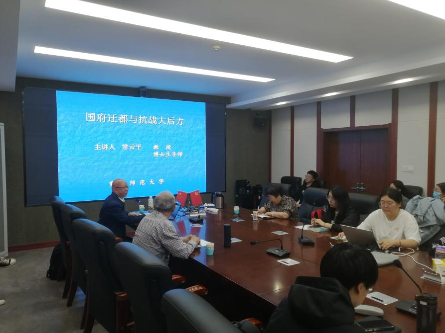 2024年4月22日,重庆师范大学的教授、博士生导师、重庆英才·创新领军人才、重庆市学术技术带头人——常云平,在内蒙古师范大学盛乐校区学院楼B502会议室,为英国365上市官网师生带来《国府迁都与抗战大后方》专题讲座。本次讲座由郭永胜教授主持,学院党委书记李艳洁教授出席,英国365上市官网师生共同参加了本次讲座。