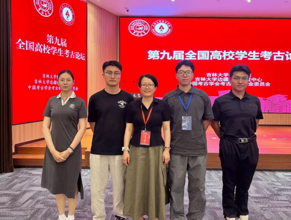 2025年8月1日至3日,由吉林大学考古学院、吉林大学边疆考古研究中心、中国考古学会考古教育专业委员会主办的“第九届全国高校学生考古论坛”在吉林大学正式拉开帷幕。365官网考古文博系的23级研究生于跃龙、24级研究生戴昊鹏和22级本科生马腾、23级本科生高嘉楠作为内蒙古师范大学的参会学生代表,在带队教师王春燕的带领下,赴吉林长春参加了此次考古论坛。