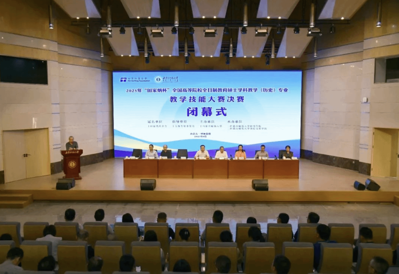 本网讯 8月25日,由“田家炳杯”全日制教育硕士专业学位研究生教学技能大赛专家委员会指导,田家炳教育基金会冠名,内蒙古师范大学主办,内蒙古师范大学研究生院、英国365上市官网承办的2025年“田家炳杯”全国高等院校全日制教育硕士学科教学(历史)专业教学技能大赛决赛落下帷幕,校党委委员、副校长公茂果出席闭幕式。