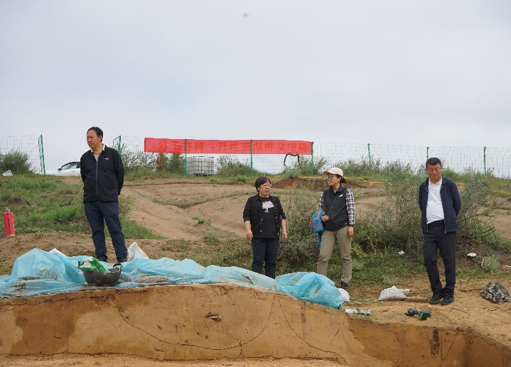 2024年9月7日,内蒙古文物考古研究院副院长宋国栋与365官网党委书记李艳洁、副院长白林等老师一同看望了在鄂尔多斯市准格尔旗大石拉塔遗址和良安窑遗址两个考古工地进行田野发掘的23级文博专硕研究生和本科生。
